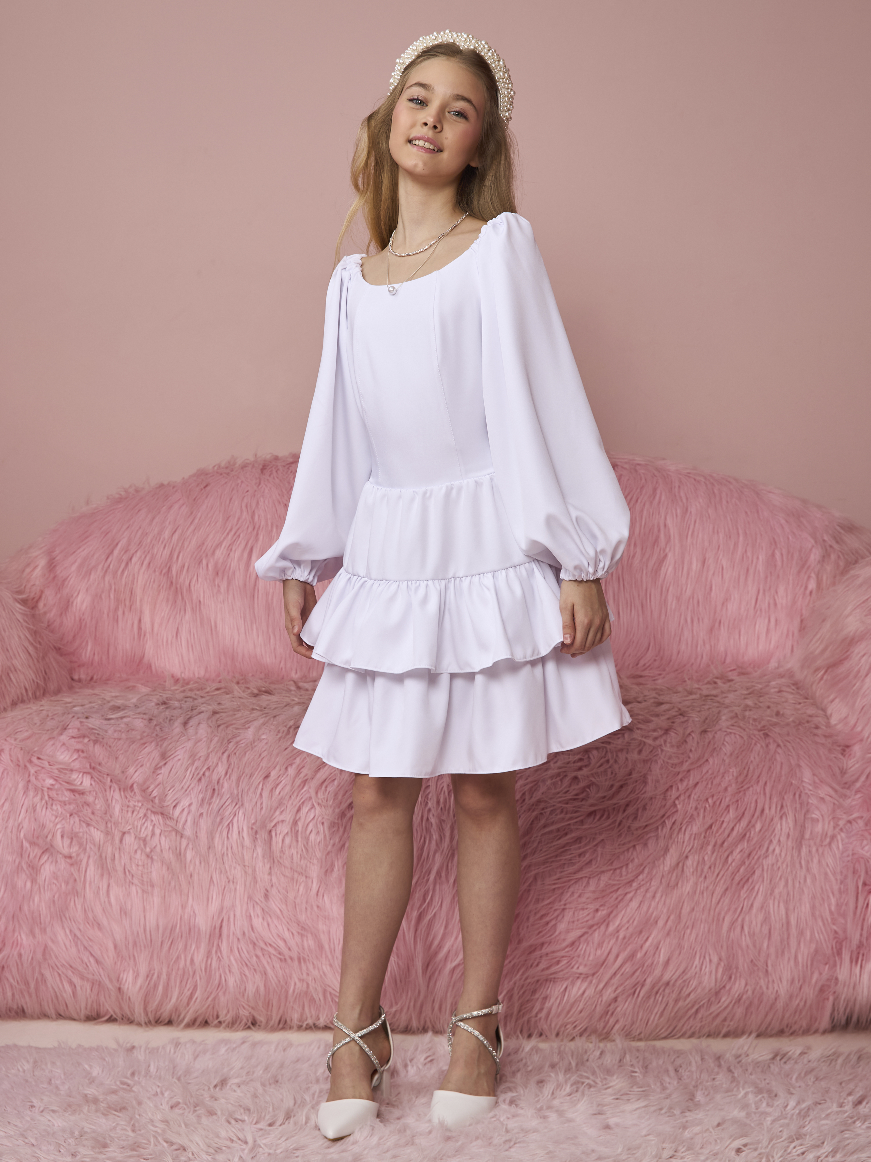Отличное праздничное платье для девочки. Данное изделие выполнено из мягкой и приятной ткани барби. Отлично подойдет для любого мероприятия: в школу, в детский сад, на новый год. Платье нарядное для девочки - отличный вариант полноценного образа на праздник.